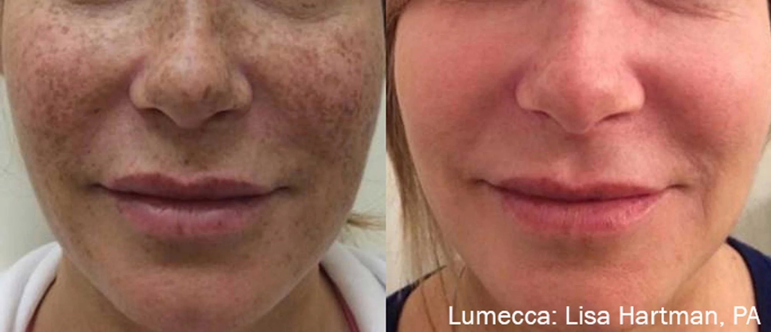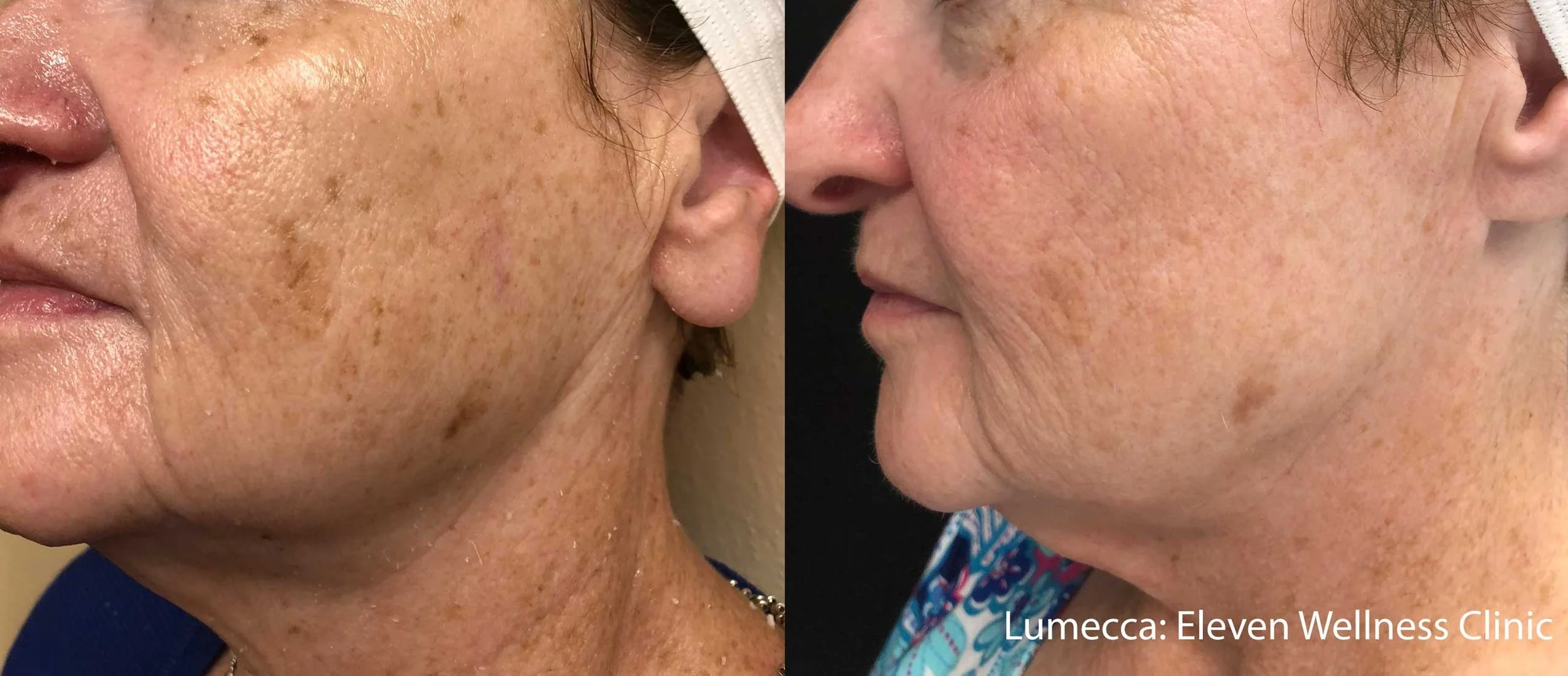 Some immediate changes may be visible immediately after the Lumecca IPL session. The treatment targets pigmentation irregularities, such as sunspots and freckles, causing them to darken and eventually flake off.Progressive Improvement: