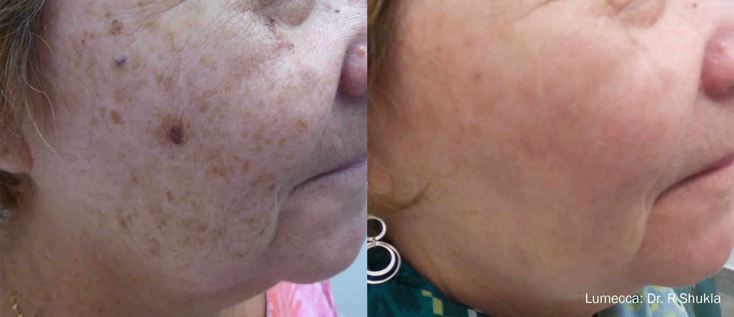 Lumecca targets age spots, sun damage, vascular lesions, rosacea, freckles, uneven skin tone, surgical scars, pigmented stretch marks, liver spots, and birth marks for Skin Types I-IV!